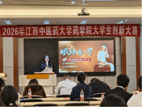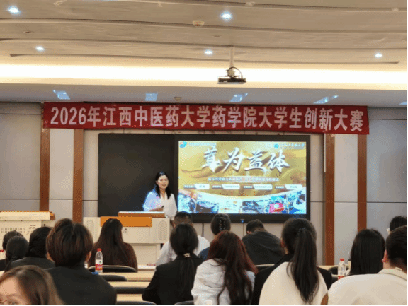 江中新闻网讯(通讯员胡瑞瑞 邵晓晴)为深入贯彻党的二十大和二十届历次全会精神,落实立德树人根本任务,发挥“以赛促教、以赛促学、以赛促创”育人作用,加快培养中医药拔尖创新人才,2026年4月23日18:00,江西中医药大学药学院在湾里校区实验楼C401成功举办2026年大学生创新大赛院赛。