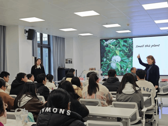 座谈会伊始,师生见面会与体验课同步开展,麦考瑞大学代表团通过特色体验课,以实际模型生动的展示了药物分子结构,同学们纷纷表示对药物手性分子的理解得以加深,同时将植物精油融入课堂教学,结合嗅觉引人入胜,让师生直观感受麦考瑞大学教学模式。