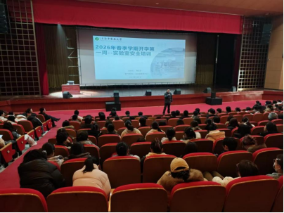 江中新闻网讯(通讯员 周海玉)为进一步强化实验室安全教育,提升师生安全意识与技能,切实预防实验室安全事故的发生,3月6日,我院于神曲厅举办2026年春季学期实验室安全培训专题讲座。学院副院长祝婧主持会议,近四百名师生参加了培训。