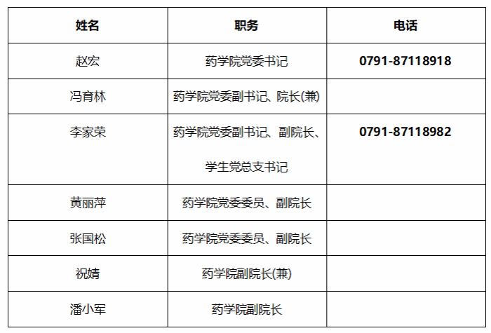 江西中医药大学药学院党政领导